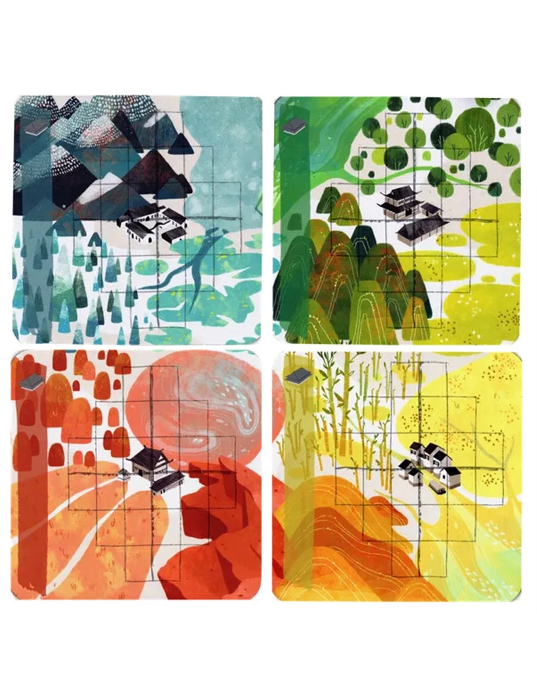 Four 7.75″x7.75″ mats for the individual player boards for the game Dragon Castle.