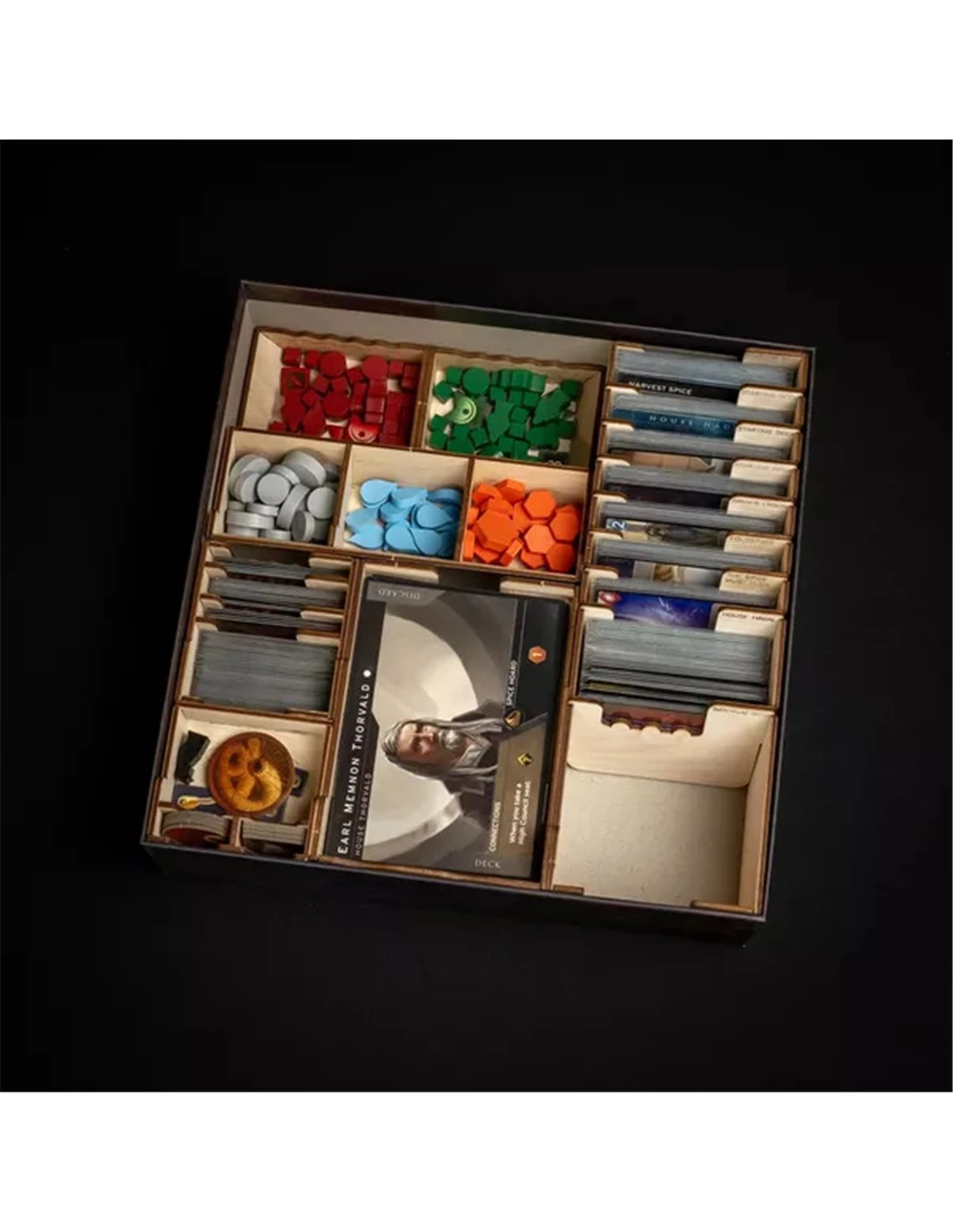 You’ll need to be well prepared if you venture in the arid desert of the Arrakis, and our Dune Imperium Organizer will help you along the way. After setting up the gameboard and choosing your leader, just grab the player tray in the chosen color, draw the necessary cards from the well-organized card holder, put the resource pool tray on the table in everyone’s reach and you can start playing.