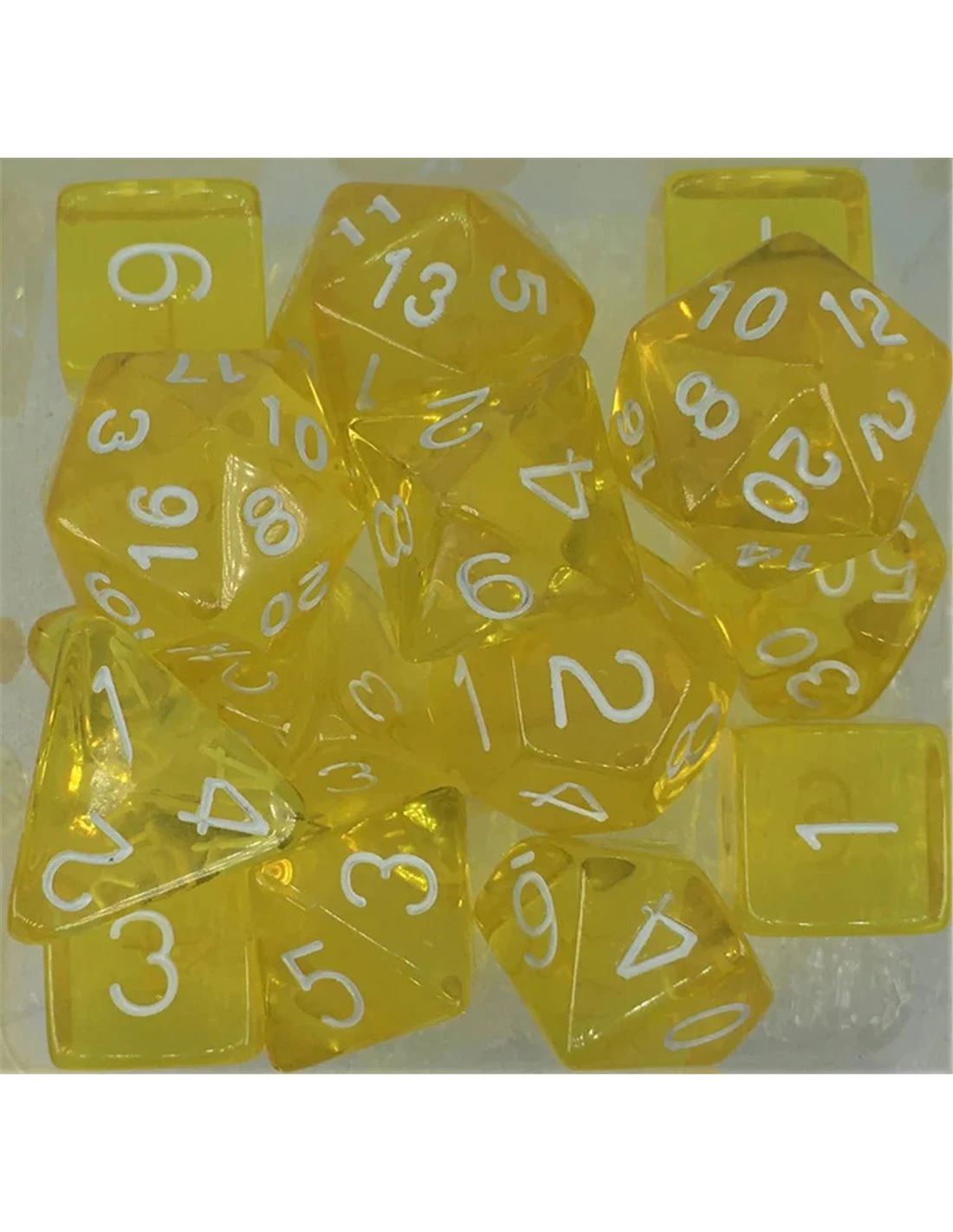 Polyhydral Diceset – 15 Dice: Translucent Yellow