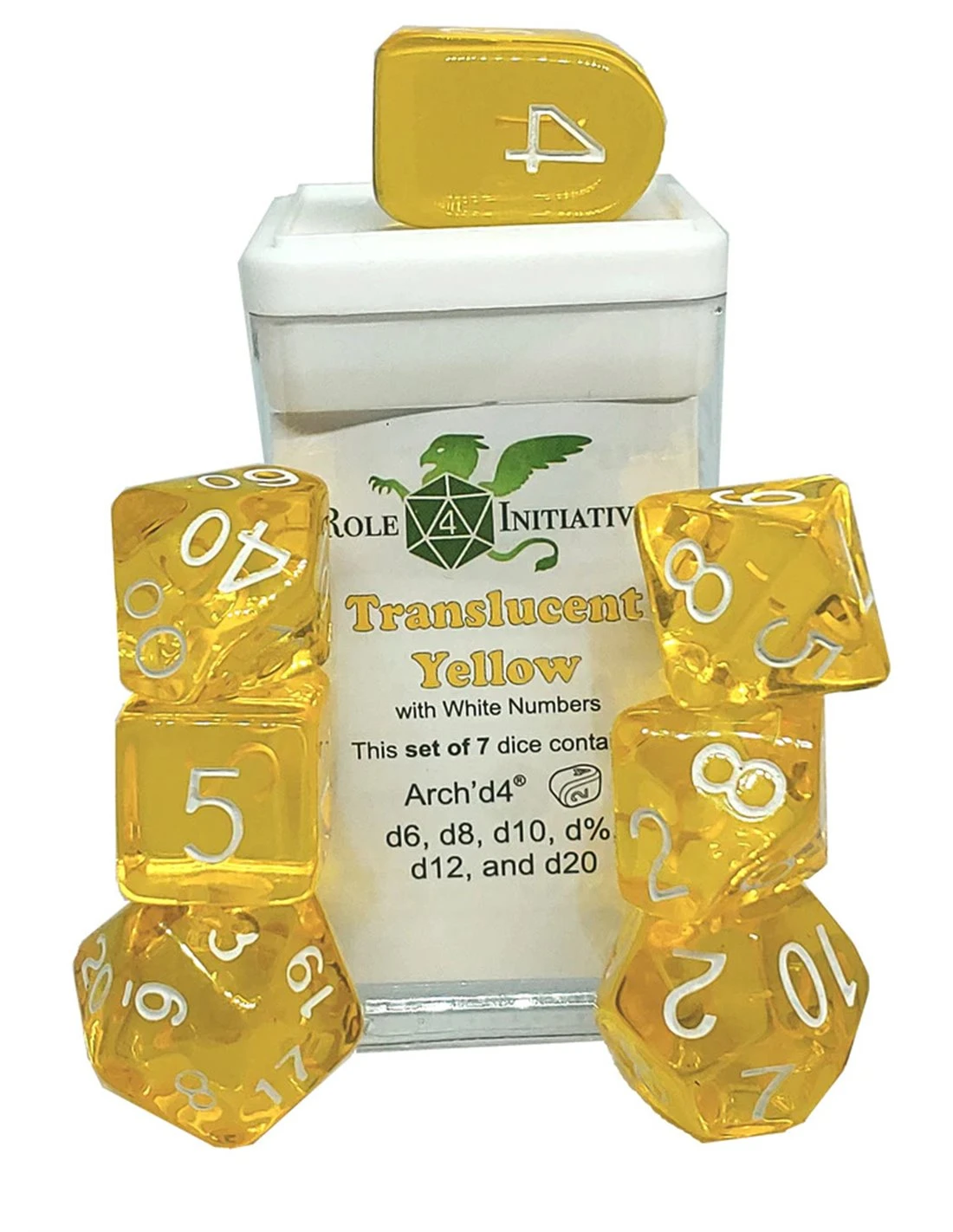 Polyhydral Diceset – 7 Dice: Translucent Clear Yellow