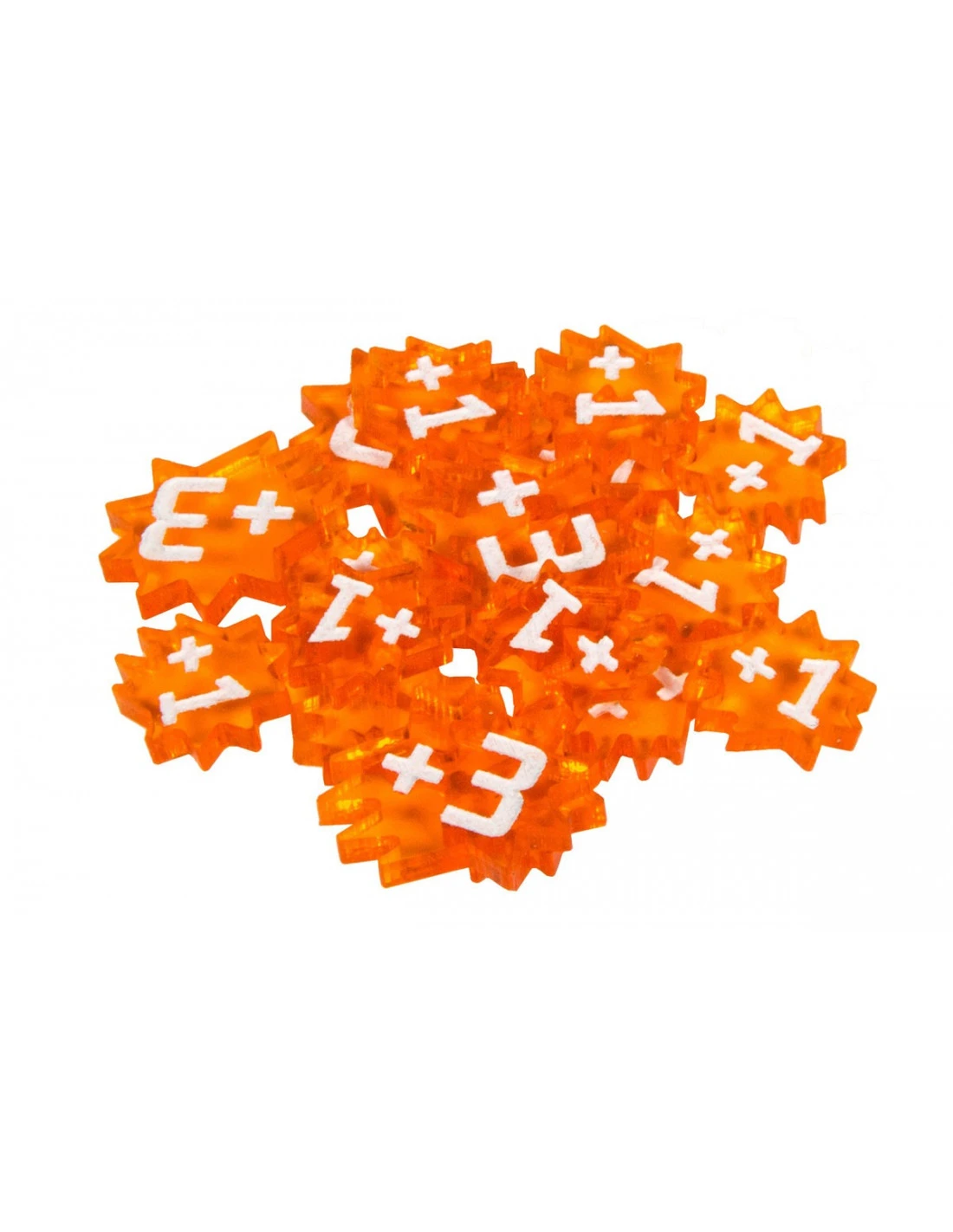 Deze set bevat 14 tokens gegraveerd met een ‘1’ en vier tokens gegraveerd met een ‘3’