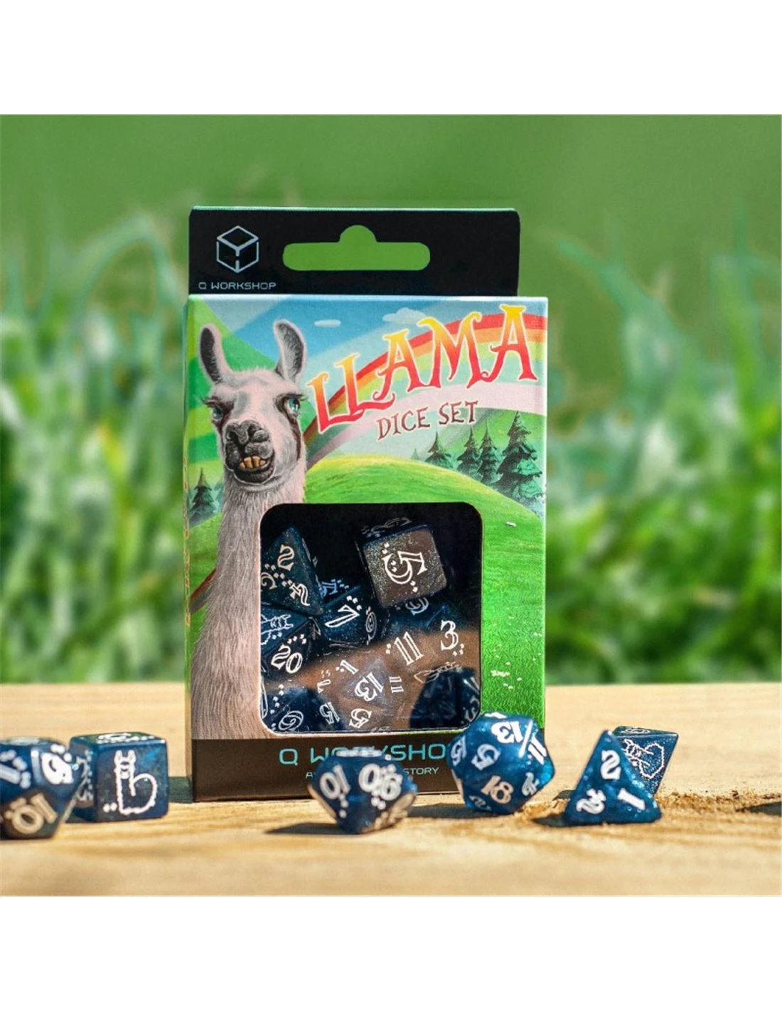 Shimmering Llama Dice Dark Blue/White (7)