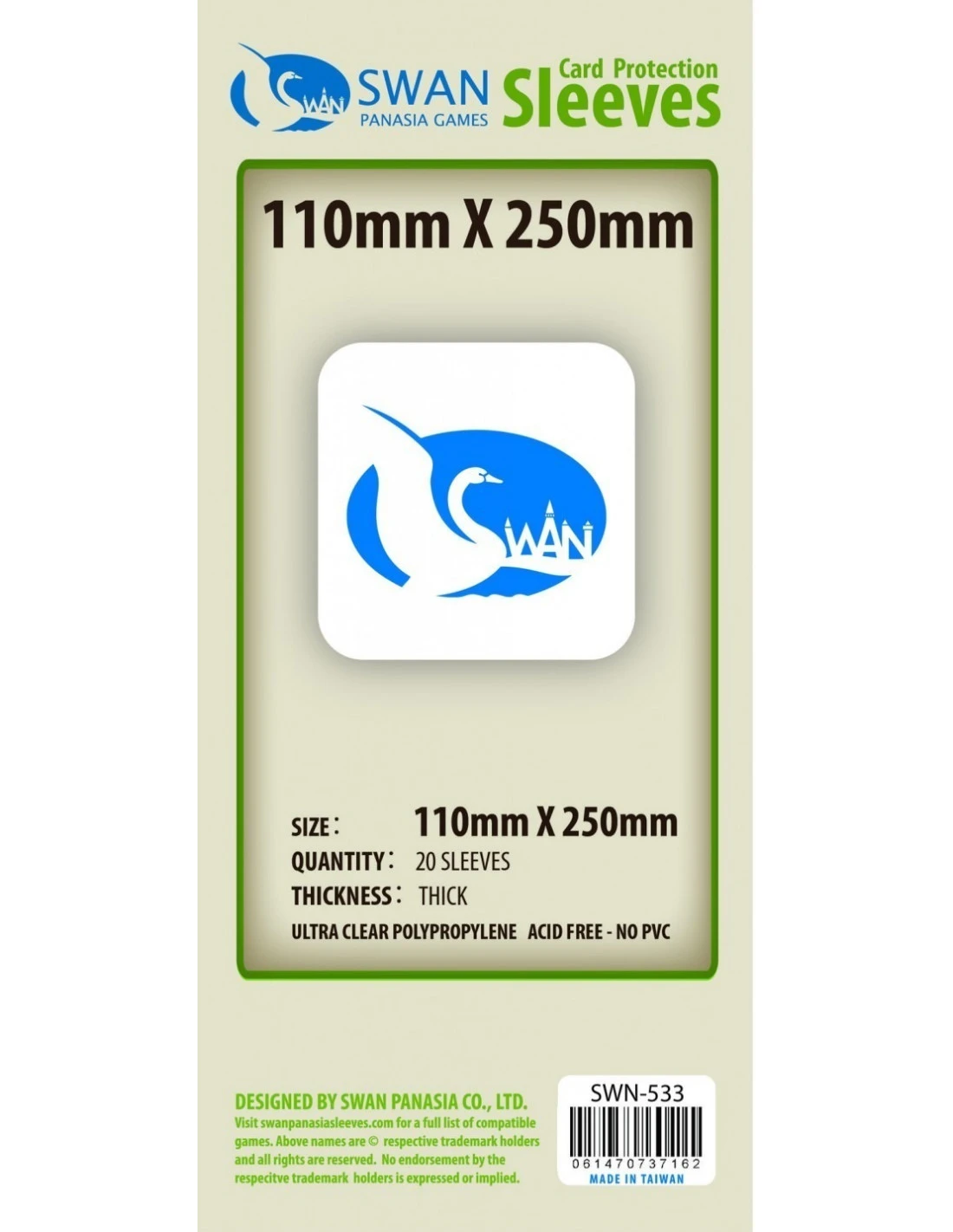 Swan: 110mm X 250mm: Sleeves For 7 Wonders Board Thick (20)