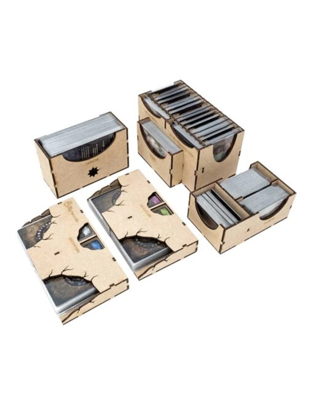 - 4x character set boxes with slots for miniature and cards. Movable dividers;